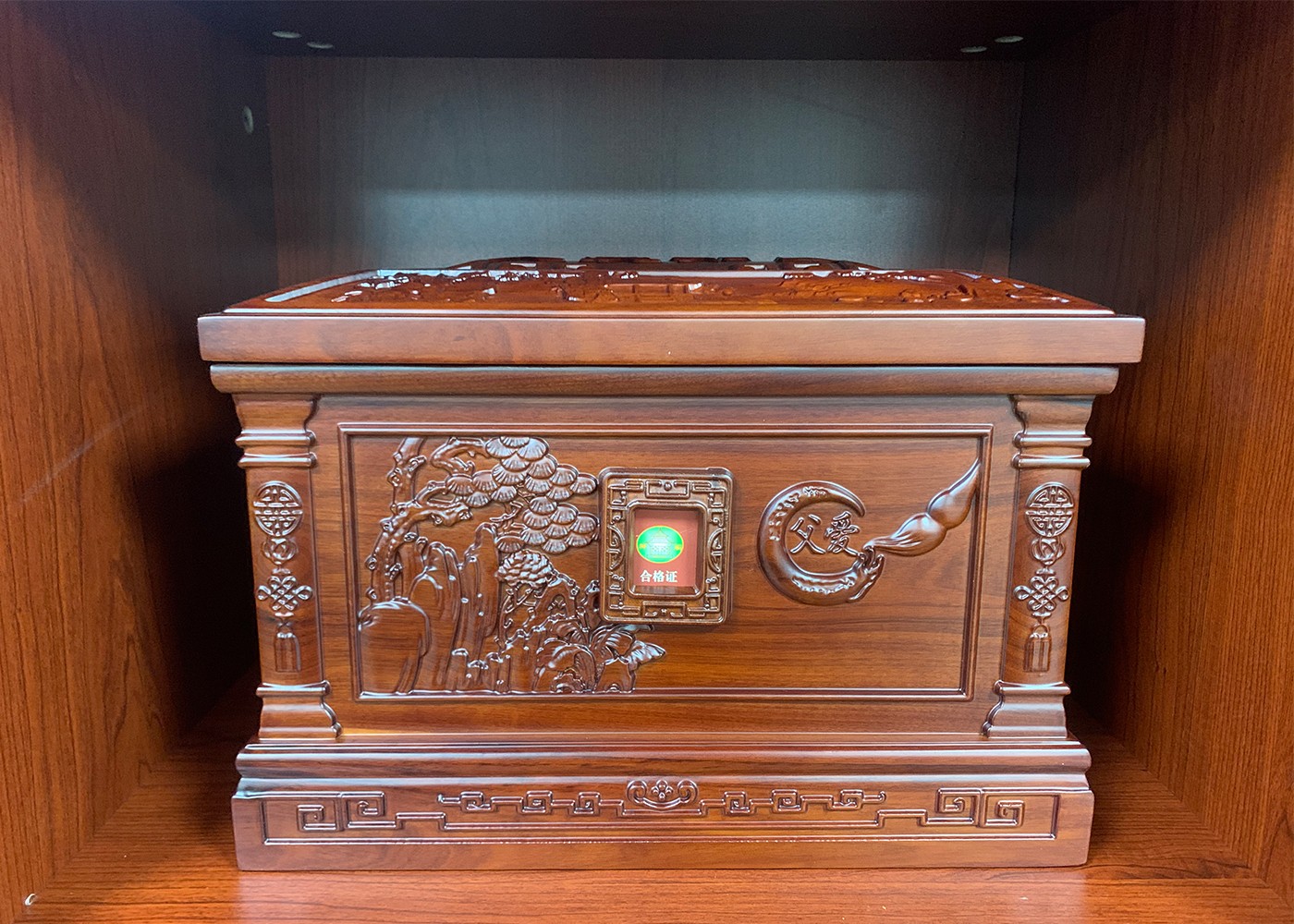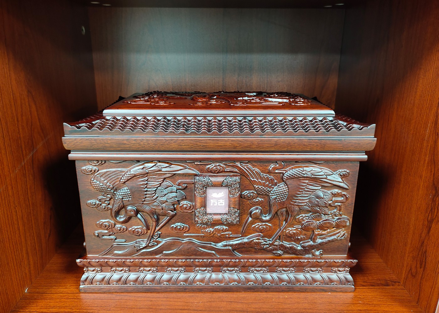 2.安放骨灰盒。以可以放照片的一面为正面,家属双手捧寿盒,小心安放入穴,可在上面铺上金色或银布的布匹,俗称“铺金盖银”,有孝敬逝者及象征来世荣华富贵之意。